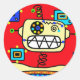 Sticker Rond Silencieux Red Retro Robot Spaceman