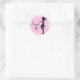 Sticker Rond Silhouette Fille et Coeurs Doux 16 Rose - Noir