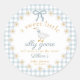Sticker Rond Silly Goose Flower Bow Baby Shower Blue Gingham