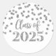 Classe de 2025 autocollants de graduation avec motif de confetti argent.