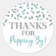 Merci de popping par favoritisme étiquette autocollant avec argent et bleu clair parties scintillant confetti motif. Un pop-corn parfait pour le mariage ou le baby shower.