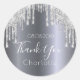Une douche nuptiale tendance et glamour. Un faux métal argenté, un arrière - plan à l'allure de papier peint décoré de gouttes de parties scintillant faux argent, la peinture goutte à goutte. Personnalisez et ajoutez une date et un nom. Le texte : le Merci est écrit avec un script de style moderne écrit à la main. Parfait pour les faveurs et les cartes de remerciements.