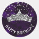 Sticker Rond Silver Tiara avec bokee argent et violet anniversa