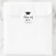 Un autocollant minimaliste de graduation avec un design simple et classique avec un grand casquette et "classe de l'année" dans une épaisse écriture manuscrite avec le nom du diplômé en noir sur un arrière - plan blanc. La couleur arrière - plan peut être changée en n'importe quelle couleur. Un style traditionnel avec une touche moderne, parfait pour une jeune diplômée. Ces autocollants sont excellents comme enveloppes scellées ou pour les faveurs de la fête.