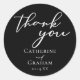 Simplement chic et élégant, notre collection de mariage hivernal minimaliste présente une typographie cursive élégante pour votre événement moderne. Impressionnez vos invités avec cet autocollant de remerciement de mariage en soirée audacieux avec un simple script blanc qui indique Merci au-dessus des noms des mariés et de la date du mariage. L'ajout parfait à un cadeau de réception de luxe.
