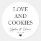 Sticker classique en Merci noir avec "Love and Cookies" dans une police classique moderne et élégante. Vous pouvez facilement le personnaliser avec vos noms et date mariage.