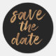 Sticker Rond Simple Écriture Pinceau Noir Et Or Save The Date
