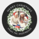 Sticker Rond Simple élégante couronne de Noël Photo Nom de fami