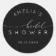 Parfumez votre célébration avec une touche de sophistication contemporaine en utilisant cet autocollant de douche de mariée sophistiqué. Affichant une calligraphie chic en blanc sur un fond noir lisse, il est idéal pour fermer les enveloppes, les sacs de faveur ou les boîtes à cadeaux. Cet autocollant personnalisable introduit un élément personnel et raffiné dans votre décoration d'événement, ce qui le rend approprié pour les douches de mariée modernes, de jardin ou de thème bohème. Il offre une touche finale intemporelle et romantique à votre collection de papeterie.