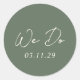 Autocollants de mariage élégants présentant une mise en page simple et minimale avec "Nous faisons" dans une typographie de script contemporain. Un design classique avec une touche moderne.