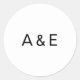 Des autocollants de mariage simples et élégants avec vos deux initiales monogrammées avec une esperluette au milieu, dans une police sans empattement noire, sur fond blanc. Un design basique et simple qui est parfait pour un style minimaliste. Ces autocollants chic et élégants font de superbes sceaux d'enveloppe.