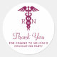 Graduation merci autocollants avec un symbole de caducée rouge élégant avec les lettres R N de chaque côté. Design minimaliste simple.