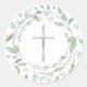 Sticker Rond Simple Silver Cross Laurel Garland Green