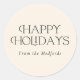 Ces autocollants de Noël élégants sont dotés d'une typographie simple et élégante lisant "Happy Holidays" en vert foncé sur un arrière - plan en ivoire. Un modèle texte est inclus pour faciliter la personnalisation. Idéal pour les scellés d'enveloppe, les autocollants de marque cadeau, les autocollants de fête et plus encore!