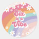 Sticker Rond Six est Vibe Retro Rainbow 6e anniversaire