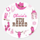 Sticker Rond Sixième Rodéo Rose Western Cowboy 6e anniversaire