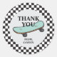 Skateboard Let's Kick It, Anniversaire merci Favor Stickers avec chèque noir et skateboard.