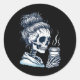 Sticker Rond Skeleton Boire Café Messy Bun Femmes Halloween