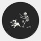 Sticker Rond Skeleton Chasing French Bulldog Biting Leg Bone Ha