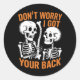Sticker Rond Skeleton ne t'inquiète pas J'ai eu ton dos Hallowe