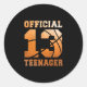 Sticker Rond Sketll 13th Birthday Official Teenager Boy 13 Year
