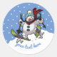 Sticker Rond Ski Snowman En Laine Casquette De Noël Cartoon
