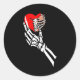 Sticker Rond Skull Skeleton Hand Holding Red Heart Love Valenti