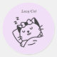 Sticker Rond Sleeping cute Cat Purple Sticker.