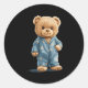 Sticker Rond Sleepy Teddy Bear In Comfy Pajamas For Boys And Gi