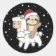 Sticker Rond Sloth Lama Noël Neige hiver Animaux Classique R