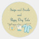 Ce design adorable présente le verset bien connu "Snips and Snails and Puppy Dog Tails" dans une police de style faux broderie. En dessous se trouve un petit étendoir avec des vêtements de bébé doux suspendus, y compris un bib, des chaussettes et un couchage. Il y a beaucoup d'objets de coordination dans mon magasin. Ces autocollants sont parfaits pour sceller les invitations de douches pour bébés ou pour les faveurs de douche.