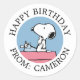 Ajoutez à tout cadeau cet autocollant d'anniversaire joyeux avec Snoopy.