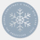 Sticker Rond Snowflake Christmas Dusty Blue Elegant Faux Silver