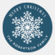 Sticker Rond Snowflake Merry Christmas Holiday Blue