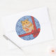Joli Hamster de Noël, parfait pour la saison des fêtes. Ce mignon hamster se tient derrière un ruban rouge et un arc, et il y a un motif de flocon de neige. L'Arrière - plan est bleu.