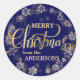 Sticker Rond Snowflakes sur Blue Gold Letter Joyeux Noël