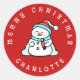 Sticker Rond Snowman Avec Nom Personnalisé | Noël rouge mignon