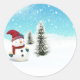 Cette image simple est celle d'un bonhomme de neige debout dans la neige au milieu des pins.