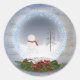 Un bonhomme de neige de vacances dans un globe de neige avec des pins et des baies.