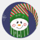 Sticker Rond Snowman Dans Un Casquette Long À Rayures