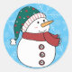 Sticker Rond Snowman d'hiver Cute Bleu Noël vacances