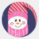 Sticker Rond Snowman en rose et Casquette rouge