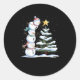 Sticker Rond Snowman Merry Christmas Santa Claus Tree Snow Fami