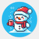Sticker Rond Snowman Pixelé avec café - Winter Holiday Art