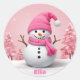 Sticker Rond Snowman rose mignon Noël personnalisé