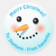 Customisez la tête de ce mignon bonhomme de neige en utilisant votre propre texte et transformez cet autocollant rond en étiquette cadeau de Noël le plus cool jamais!