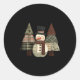Sticker Rond Snowman Trees Patchwork Plaid Trees Rustic Christm