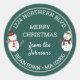 Sticker Rond Snowmen mignon en Écarts Plaid sur Turquoise