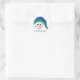 Un mignon bonhomme de neige portant un casquette bleu et vert avec un gros sourire sur le visage. Joues violettes et nez de carotte rose. Le dicton peut être changé à volonté.