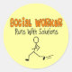 Sticker Rond Social Worker "Runs with Solutions" Dons Drôle